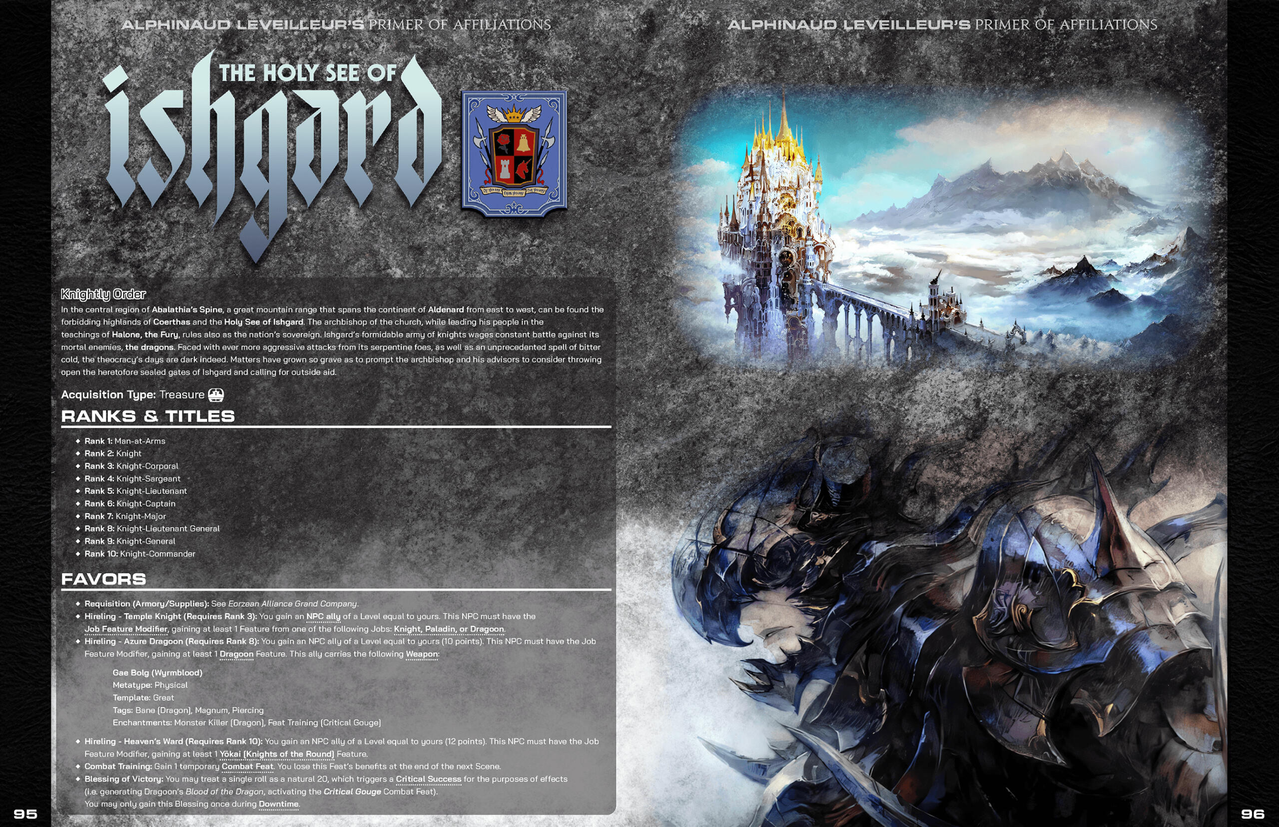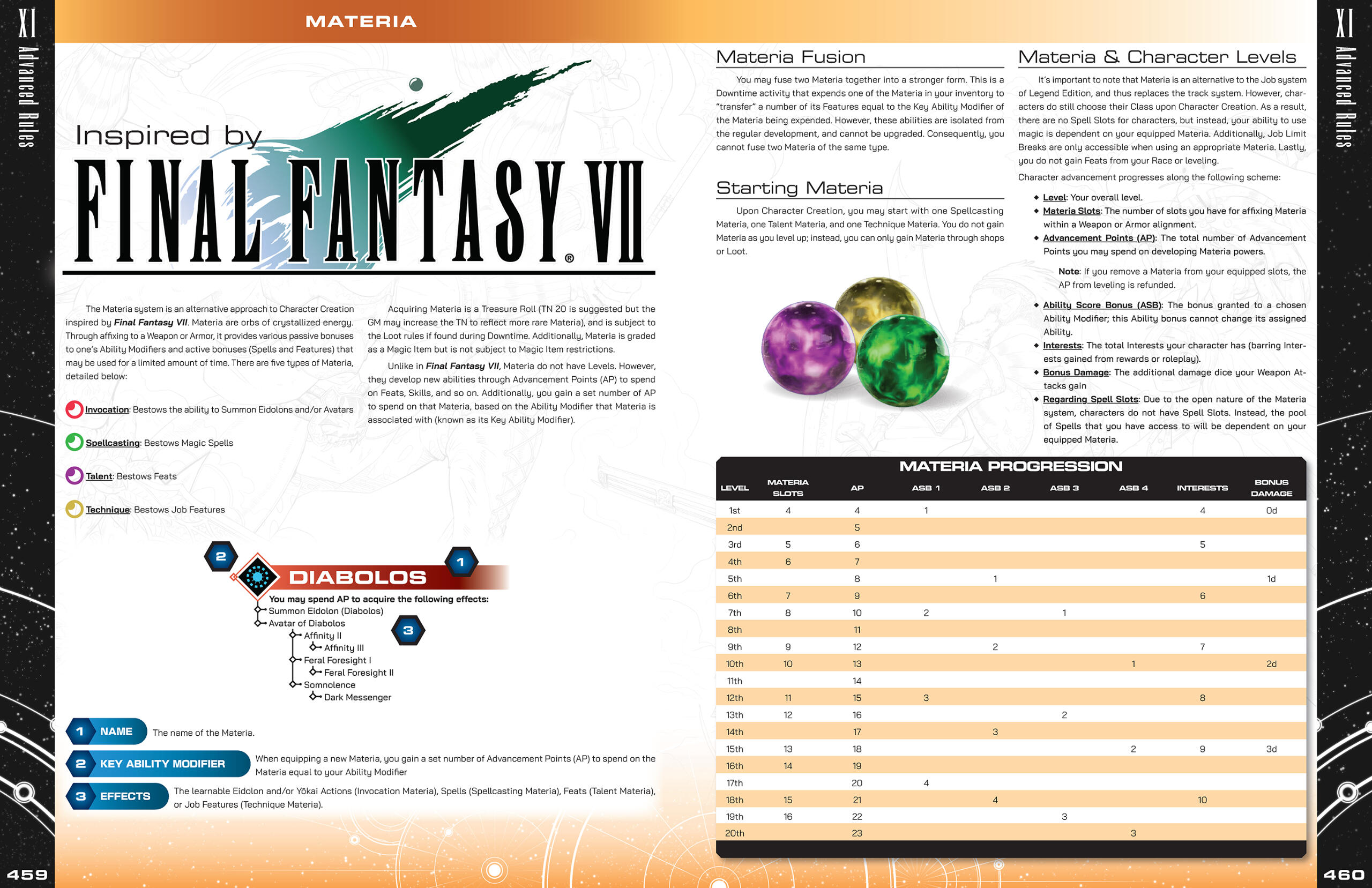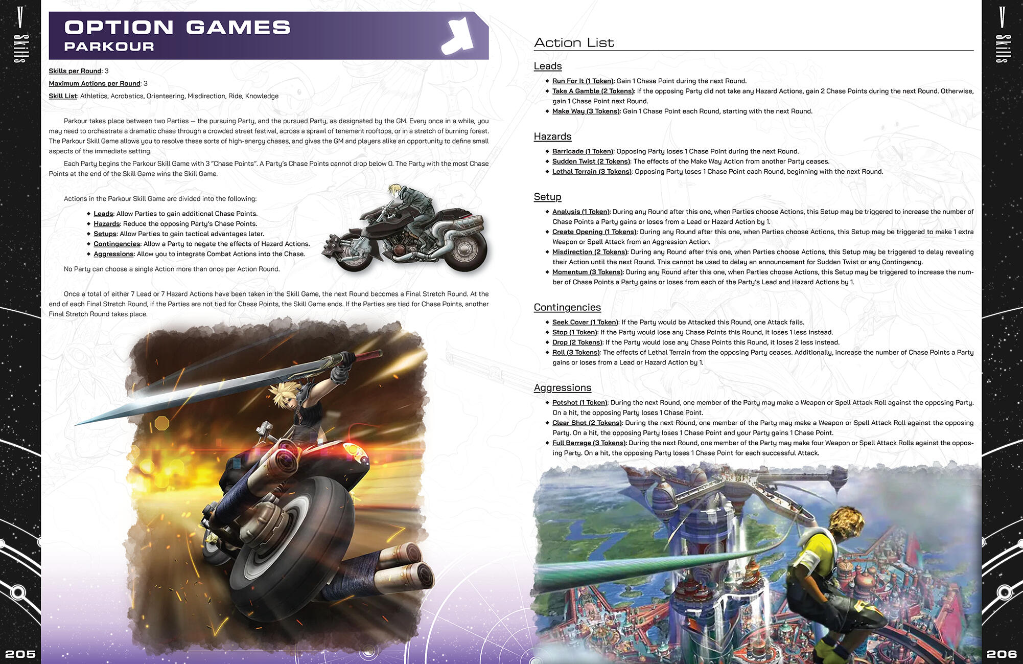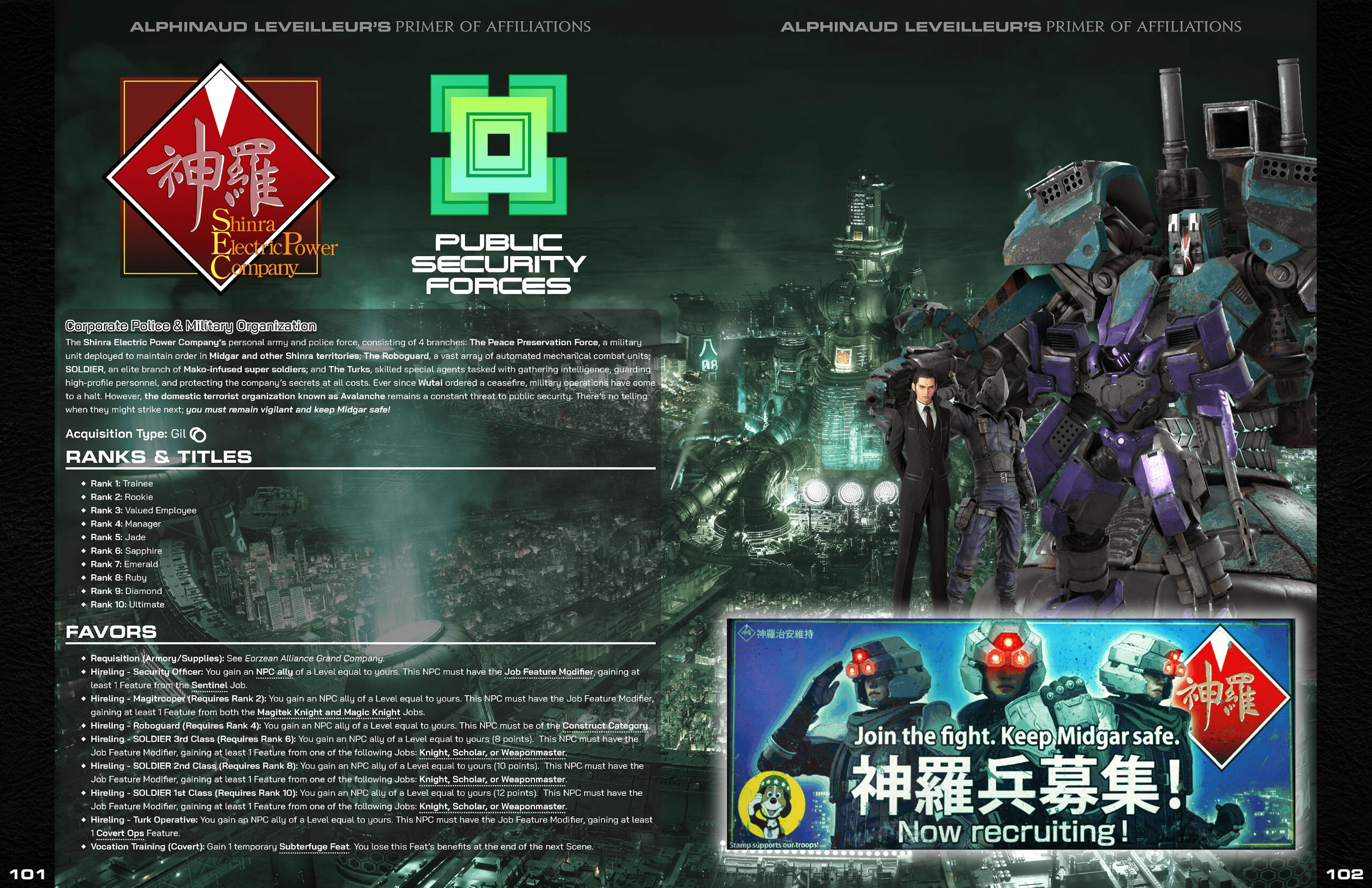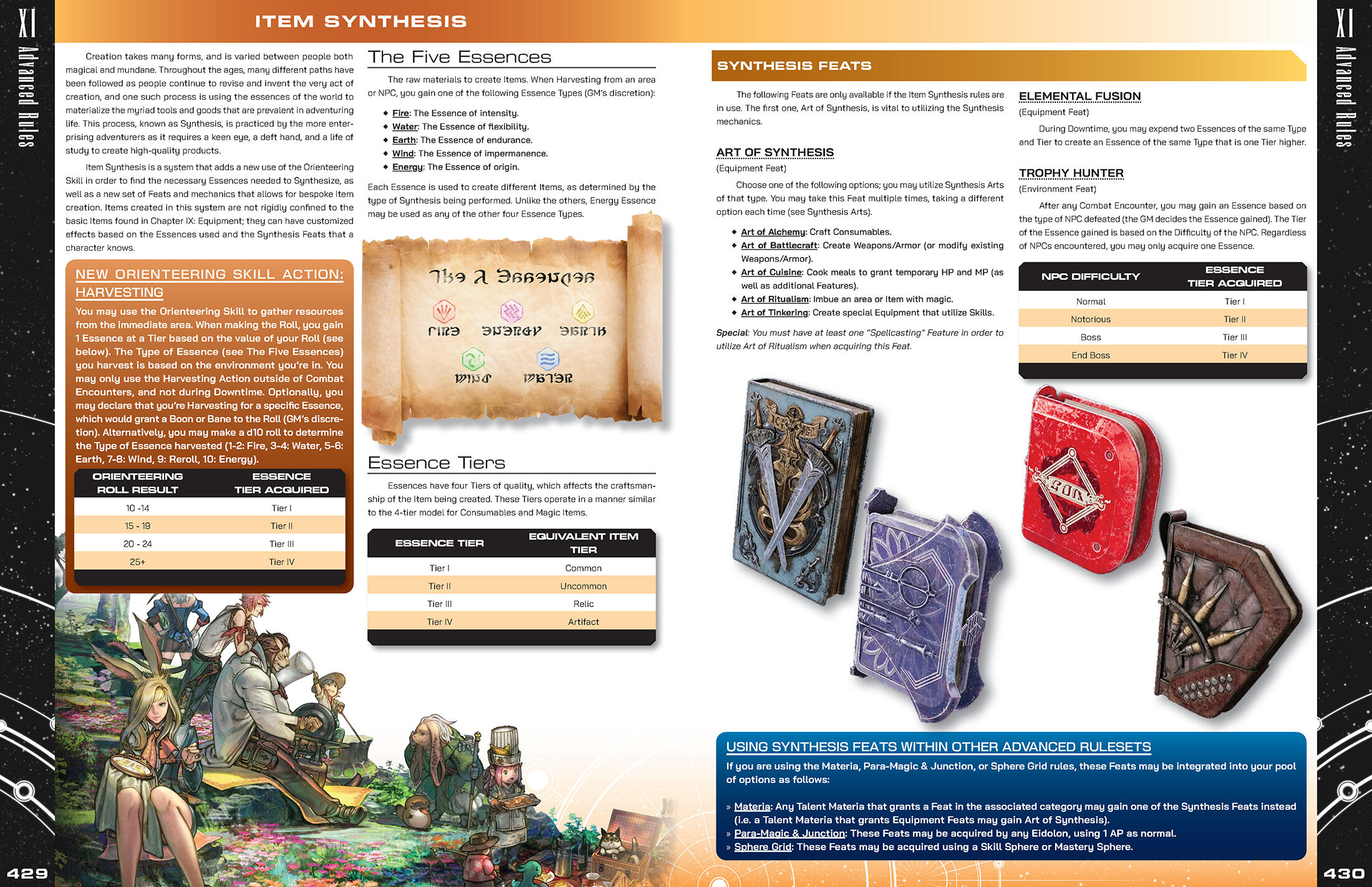 The Final Fantasy series has had a shockingly dense number of fan made tabletop roleplaying games made since the mid 90’s, each one bringing a unique perspective from their respective developers in an attempt to capture what they believe to be the spirit of the franchise. When Mildra approached me with his own spin on this time-honored tradition, I was instantly captivated by the desire to pull inspiration not only from one particular game, but every corner of the Final Fantasy series.Final Fantasy is an anthology series; every entry tells a different tale, each one set firmly in its own continuity. In order to craft a game that marries all of the series’ various ideas into one cohesive package, Mildra and his co-developer needed to take a setting agnostic approach. This mindset would serve as the basis for the design philosophy I would apply to the game’s visual identity; rather than pulling inspiration from game-specific elements (like menus and UI), I instead opted to point the book’s art direction towards the Japanese game manuals and art books (Ultimania).Naomi Hunter (NamiNomi) created the layout for the core book with this art direction in mind, and through consistent and efficient communication, we were able to establish a look for the game that both pays homage to the source material while also allowing the reader to imagine any hypothetical setting, whether it be an existing Final Fantasy world or one of their own creation.